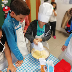 Os vamos a contar lo que hicimos con el aula específica y algunos niños de diversos cursos y clases, hicimos un taller de cocina, cocinamos un postre tradicional de semana santa, unas alpisteras.